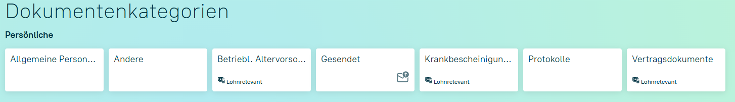 Mitarbeiter erreichen die Personalakte über "Mein Profil" -> "Dokumente". Der Dokumentenbrowser zeigt nur die Kategorien und Dokumente an, die für den Mitarbeiter freigegeben sind.